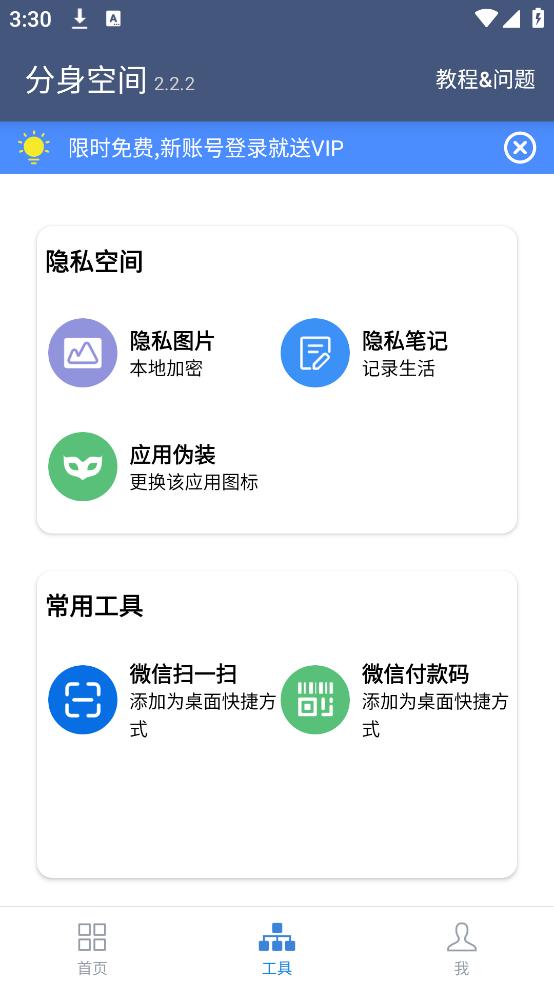 分身空间软件是一款可以让一款应用分身的手机软件,软件中的主要功能就是为了让用户能够实现应用在同一部手机上可以双开甚至是多开,软件简单好操作,引导是操作也让用户使用起来更加的方便,整洁的界面也让用户没有更多的困恼,如果你需要将应用双开,那就立刻下载吧!