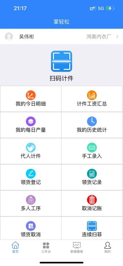 掌轻松电子工票软件,手机扫码,手机扫菲,适用服装、电子等中小企业为全体员工计件结算工资的办公软件系统,员工操作扫码计件,及时提现生产进度以及员工绩效,生产各种报表。