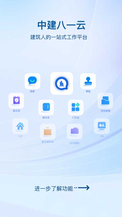 中建八一云app下载是一款移动办公服务平台,平台拥有审批,消息,工作台,项目管理,通讯录等等功能服务,可以帮助用户更高效移动协同工作。