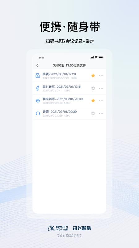 可以对会议记录可以进行灵活的编辑、导出、获取、分享、收藏等个性化操作;实时地对云文件进行访问和文件管理;