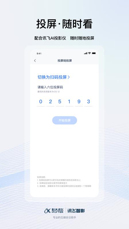 讯飞智影投屏app是专为讯飞AI投影仪、讯飞AI麦克风投屏器制作的手机配套应用,软件拥有会议记录管理,上传讯飞cast文件等功能服务,需要的朋友欢迎前来下载。
