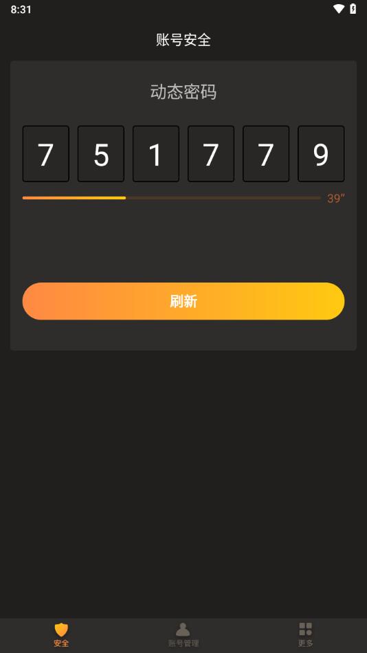1、下载安装后,无论是否绑定账号都可以展现动态密码页面;