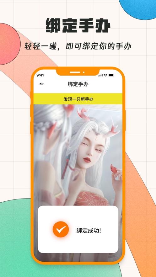 - 绑定手办:将手机与手办轻轻一碰,就可绑定;