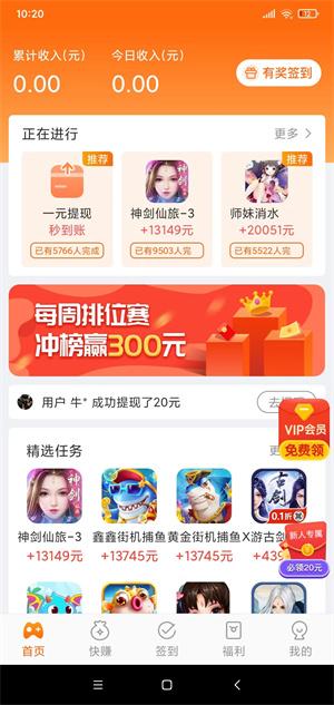 1、新用户进行小牛赚钱app下载安装后,就有新人专属福利100%领20元红包完成每日任务即可领金币,10000金币=1元