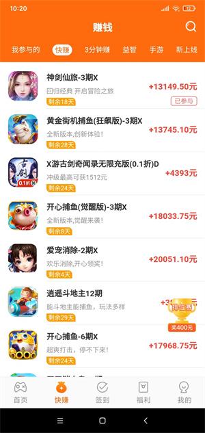 2、游戏类型包括快赚、3分钟赚、益智、手游等等,还有每周排位赛赏帮的前30名玩家将会获得现金奖励