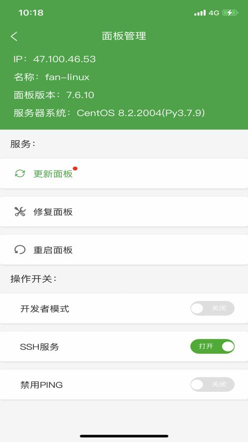 提供SSH开启关闭服务,SSH端口更改,禁ping,防火墙端口放行以及操作日志查看;CPU、内存、磁盘IO、网络IO数据监测,可设置记录保存天数以及任意查看某天数据;