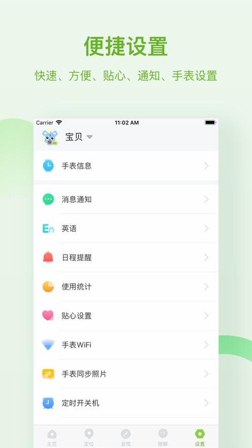 此应用与中国移动儿童手表完成绑定后,可为手表更便捷地进行设置,了解手表的使用状况、学习状况。