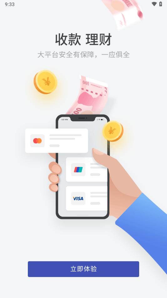 首页融合了收款和理财产品,页面简介,让用户一目了然。