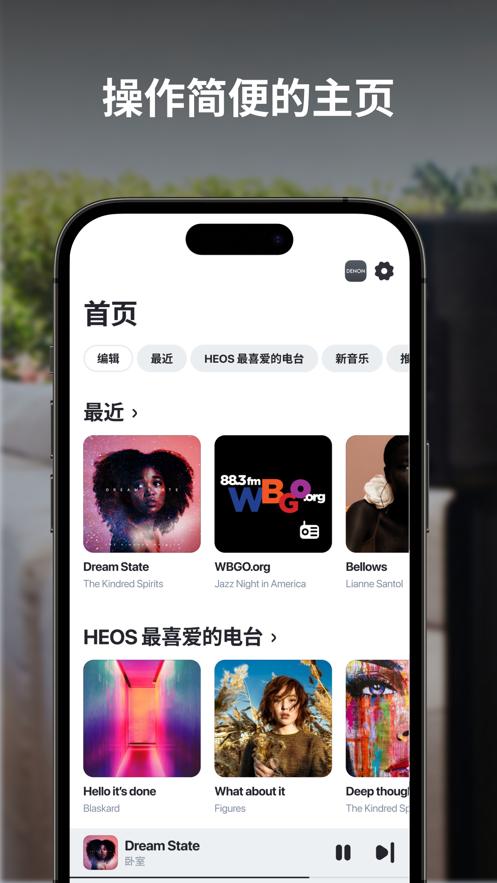 这是您的HEOS无线多房间音响系统的配套应用程序。该应用程序提供您在HEOS系统上设置和欣赏音乐所需的内容。