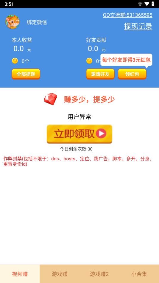 另外还有游戏赚玩法,每天都能轻松赚些零花钱,赚多少提多少,满0.3就可无限次提,无审核光速到帐。