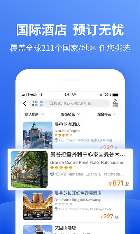 全面的在线商旅产品预订: 实现签证、机票、酒店、火车票、机场服务、用车等业务的一站式在线预订服务。