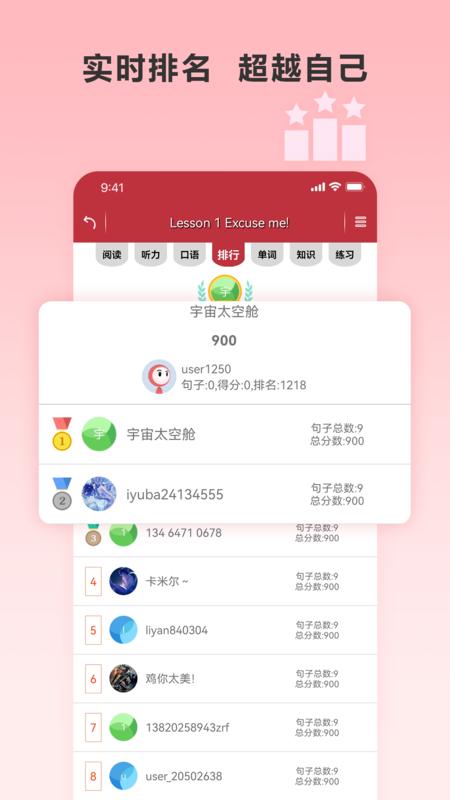 实时排名,超越自己