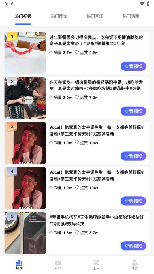 1、每日热门带货视频榜单:让您可以知道热卖的商品都是由哪些视频带来的。