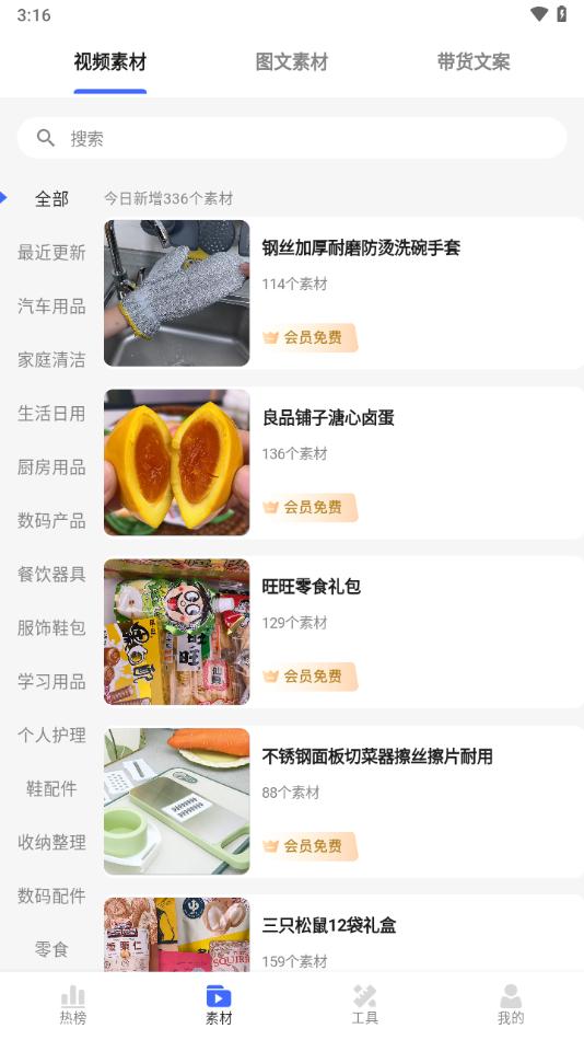 带货全能王提供了带货视频素材,热门带货榜单,智能文案创作等功能,
