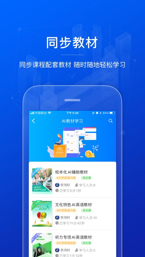《AI一体化教学平台》是一款基于AI技术,集多媒体教材学习、AI考试、错难题辅导、学习认知诊断分析为一体的英语学习APP,