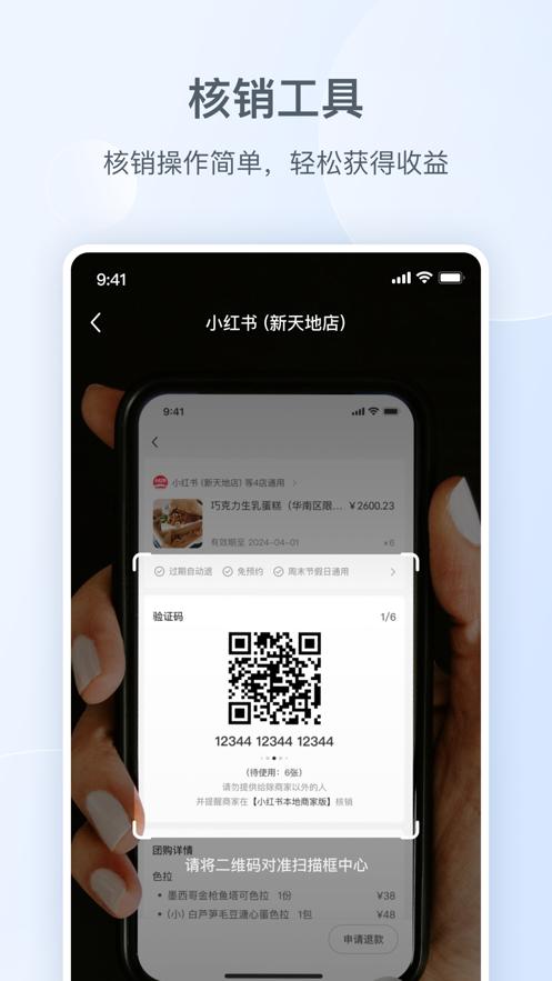 入驻后可使用订单核销等商家常用经营工具,助力您在小红书平台轻松实现线上经营,玩转本地生意。