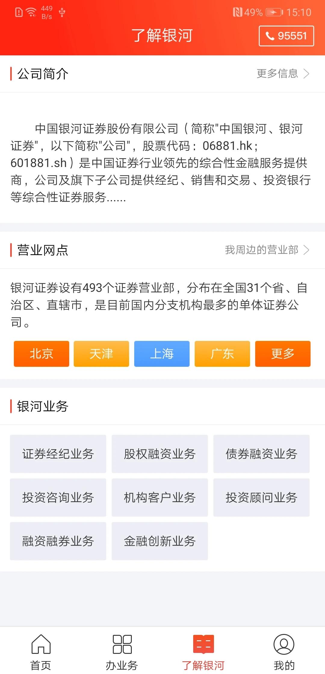 你可以通过银河掌厅进入行情交易、商城、开户等服务系统,也可以办理相关业务。