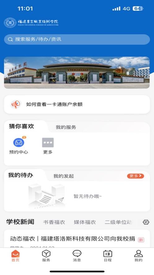 福建农业职业技术学院I福农App,此App是福建农业职业技术学院智慧校园建设App端,方便教职工线上智慧化办公,学生线上智慧化生活,校外访客线上智慧化了解学校,智慧校园综合服务平台,具有实时更新校内资讯信息、校园通知公告、查询课程、空教室等功能,点击主页功能就可以了