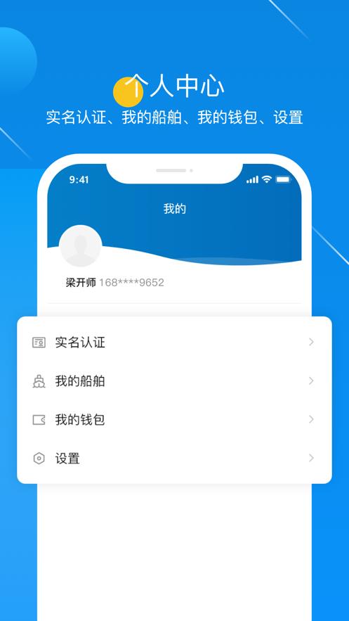 实名认证、我的船舶、我的钱包、设置
