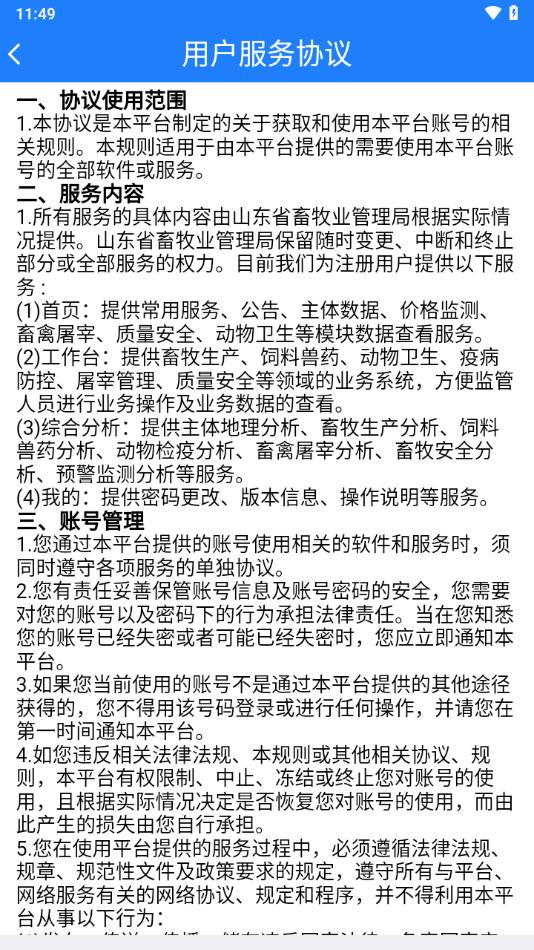 掌上畜牧APP登录账号山本级系统管理员创建并下发,账号与电脑端智慧畜牧业务支撑服务系统账号一致。