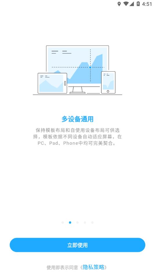 保持模板布局和自使用设备布局可供选择,模板依据不同设备自动适应屏幕,在PC、Pad、Phone中均可完美契合。