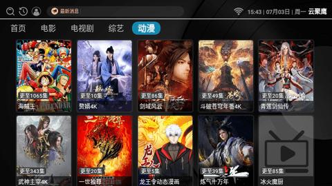 1.打开云聚鹰TV之后,我们可以在云聚鹰TV上发现下图所示的内容,这里拥有电视剧,电影,动漫,综艺等节目