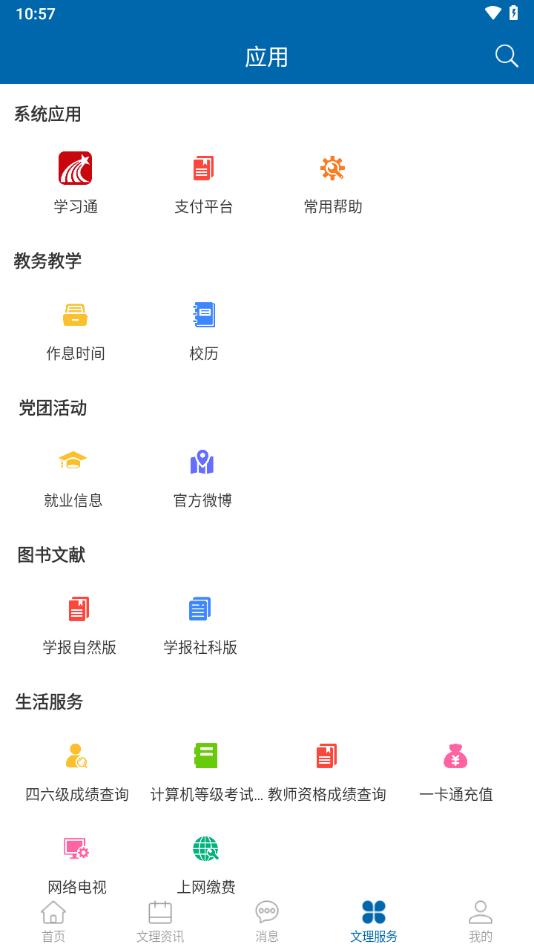i文理app是专为兰州文理学院师生制作的网上办事大厅,软件拥有首页,文理资讯,消息,文理服务,我的等等功能板块,可以帮助更好的校园服务。