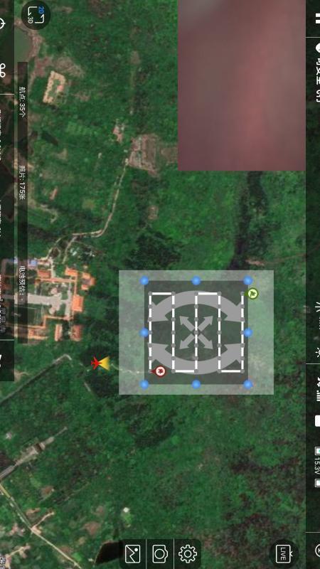 手指拉框实现调查点区域放大、缩小、旋转,滑动选择飞行参数,自定义飞行区域或者选择矩形、圆形区域,手指完成航线规划