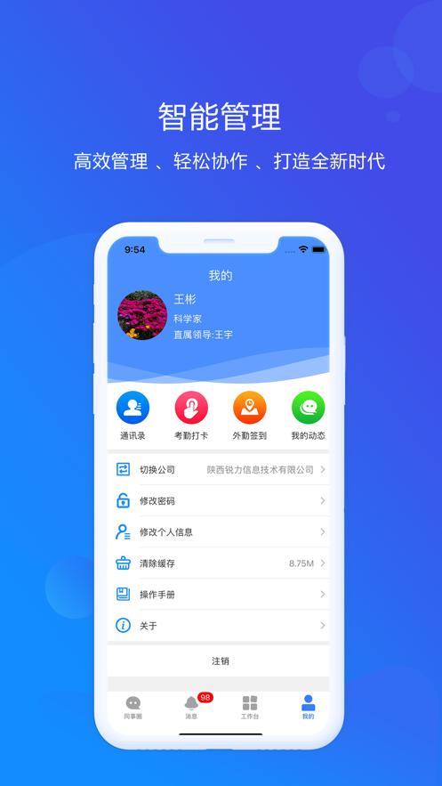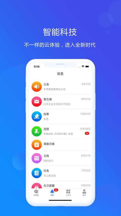 才智云集团版下载是一款企业人力资源互联网管理云平台,平台拥有同事圈,消息,工作台,我的等等功能板块,可以帮助用户更好的高效智慧工作。