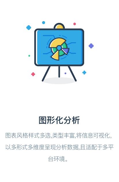 图表风格样式多选,类型丰富,将信息可视化,以多形式多维度呈现分析数据,且适配于多平台环境。