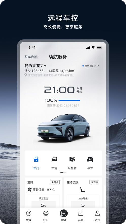 在这里您可以构建专属社交番圈,结交同道朋友,解锁换电汽车知识,分享出行生活趣问,订购睿蓝汽车,远程智能操控,记录换电旅途,唤醒自由力。