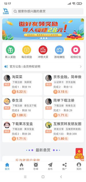 互推赏是由深圳市啵萝网络科技有限公司打造的一款新形式的做悬赏任务赚钱APP,