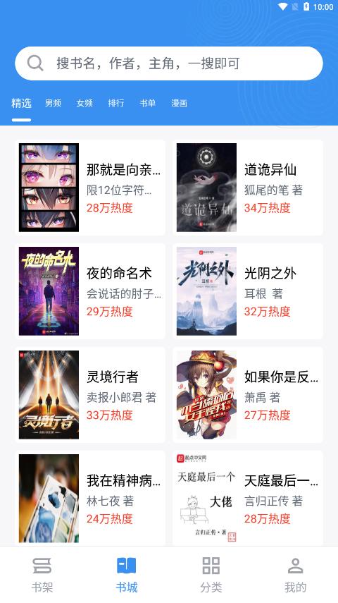 1、书架、书城、分类、我的四大功能,随便你怎么操作
