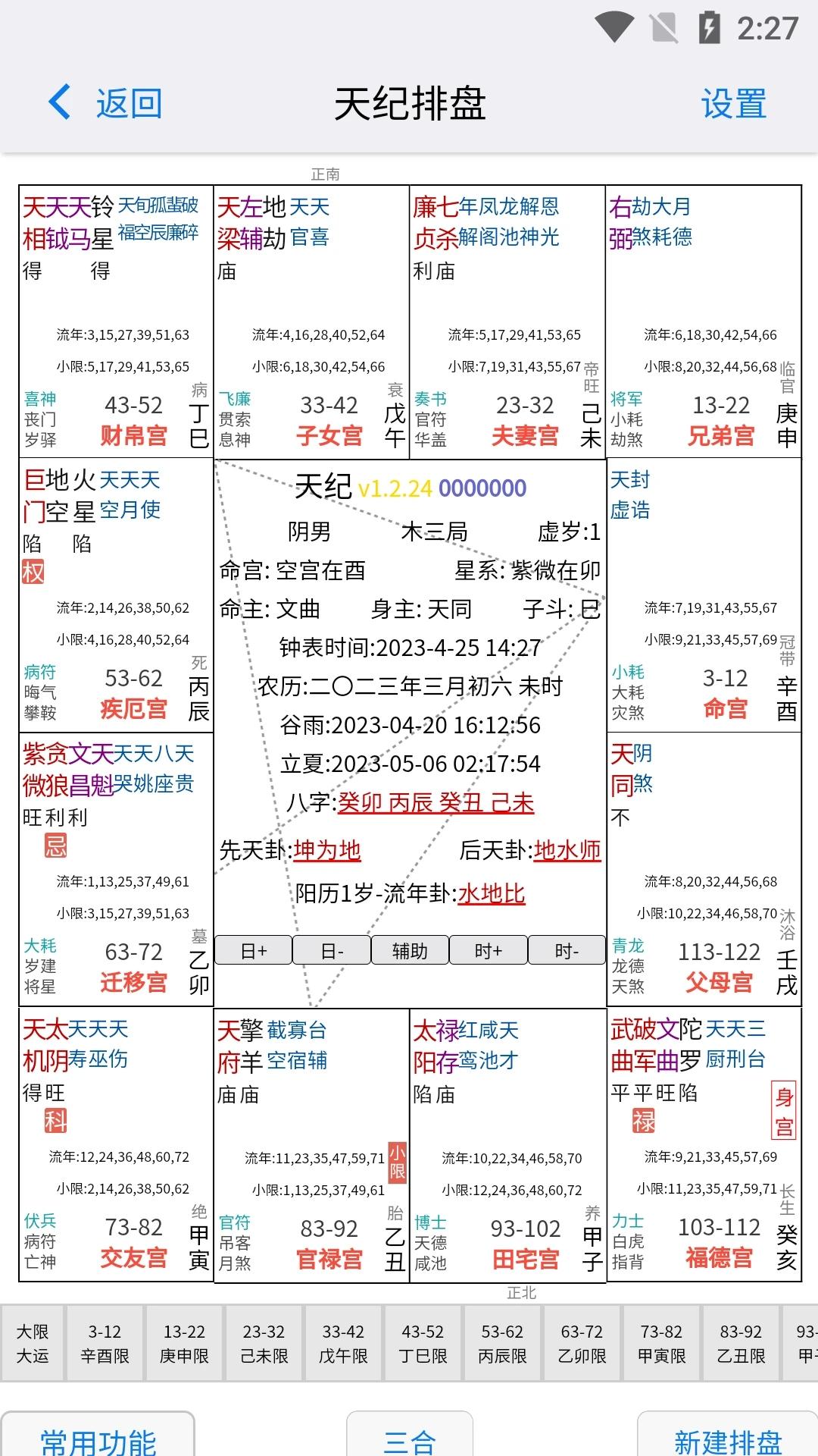 本软件是依据中国传统易学古籍记载并结合《紫微斗数全书》,《倪海厦天机道》,《河洛理数》等国学书籍而研发的易学辅助计算排列工具,将人出生时刻对应的宇宙天体运行情况按照易学古籍记载的规则进行平面二维化排列。