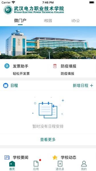 武汉电院app下载官方是一款由武汉电力职业技术学院官方打造的校园办公服务平台,平台拥有新闻资讯,课表查询,成绩查询,一卡通等等功能服务,可以帮助更好的校园生活学习。