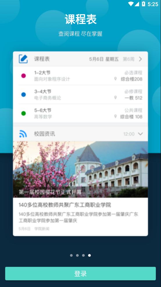 通过云间校园APP可以查看校园资讯、通知公告、课程表等校园信息;