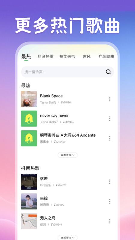 1、优质的搜索热词榜单随时看,让你知晓其他人都在搜索的铃声