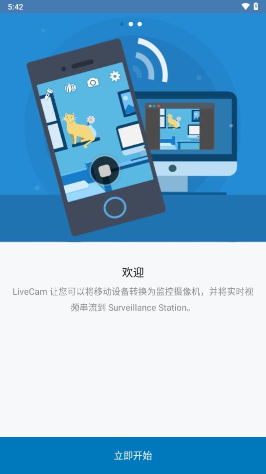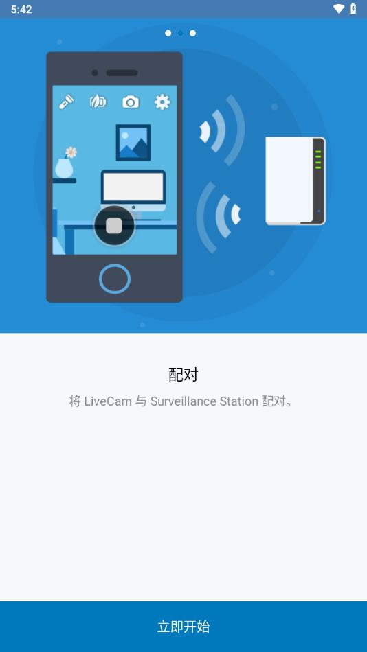 借助 Synology LiveCam,可以将移动设备转换为网络摄像机,并将其与 Surveillance Station 配对。