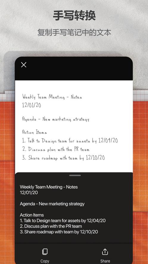 • 将手写笔记扫描为电子版供以后编辑(仅支持英语)