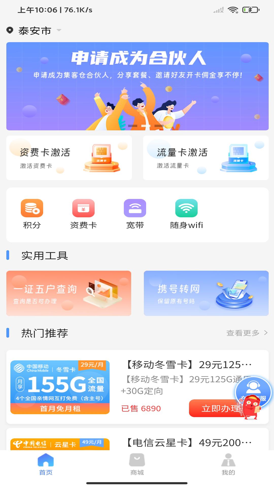 集客仓app是山东集客仓信息科技有限公司官方倾情推出,软件拥有手机套餐选购,靓号选购等等功能,使用简单方便,觉得不错的朋友欢迎前来下载使用。