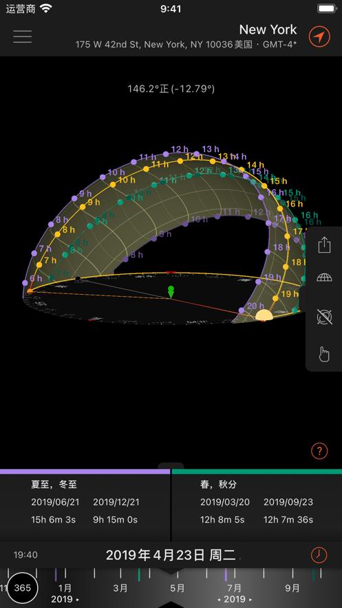- 查看太阳位置:任何一天、任一时刻,由您选择