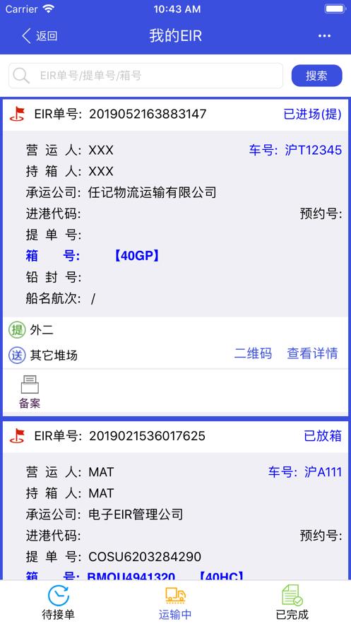 该应用主要是集装箱运输、交接过程中,司机、运输公司等用户查询箱信息、破损情况以完成运输交接等过程。