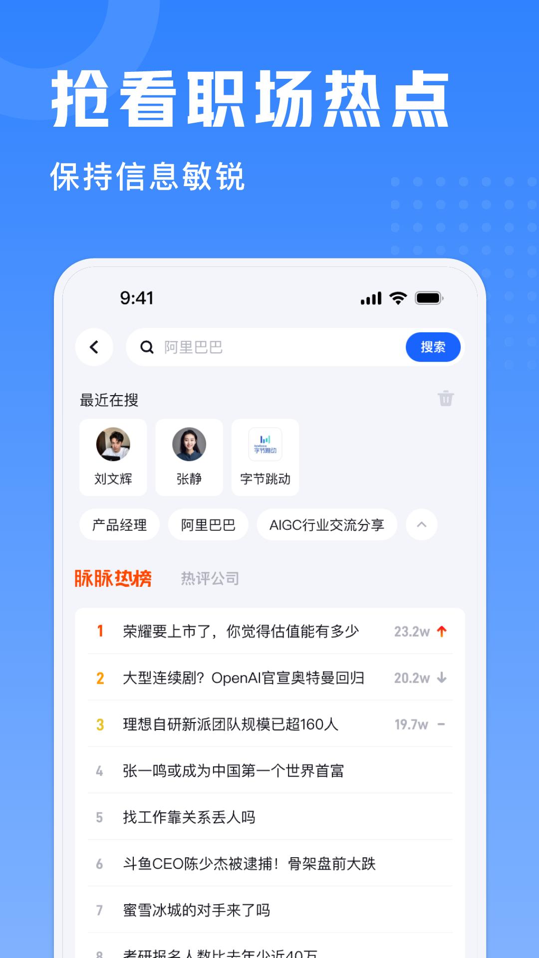脉脉实名版app是一款职场社交平台,平台可以帮助用户建立人脉网络,打造个人品牌,获得职场机会等等,觉得不错的朋友欢迎前来下载使用。