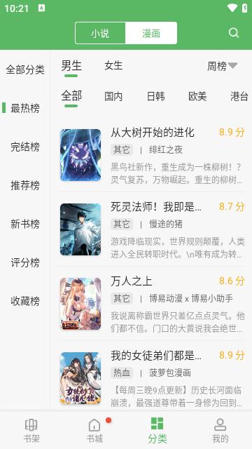 2、排行榜:畅销榜、新书榜、更新榜等,只读经典,消除您的选择困难。