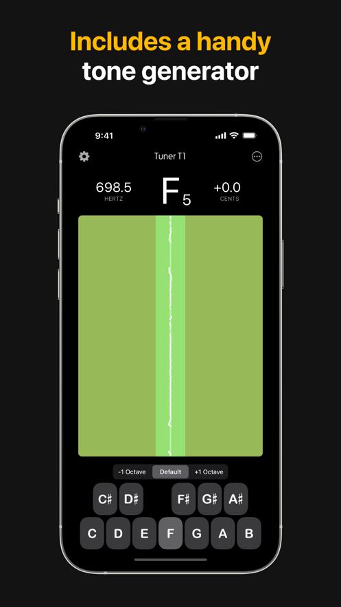 Tuner T1还配有一个方便的音调发生器,可以播放任何音符作为调音的参考。