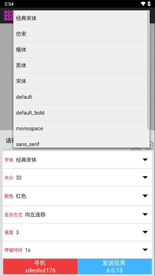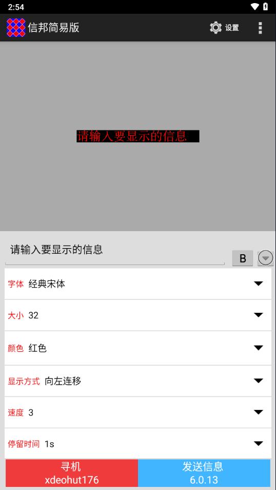 2、发送:在手机通过WiFi与控制卡连接之后,可通过发送信息按钮把节目信息发送给控制卡,设置信息也需在连接之后发送。