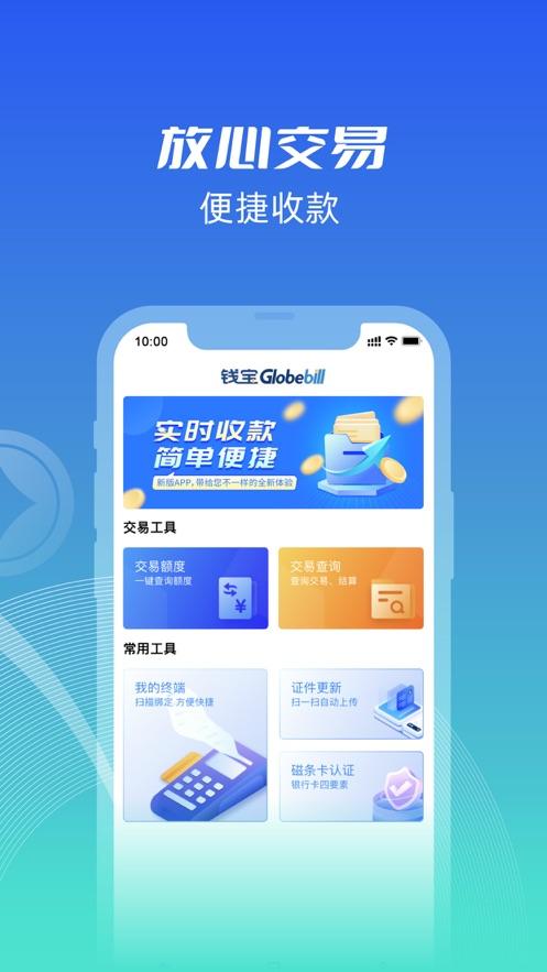 钱宝GB商户版app是专为广大中小微商户制作,软件拥有移动收银,交易查询等等功能服务,可以让收款更智慧更安全有保障,需要的朋友欢迎前来下载使用。