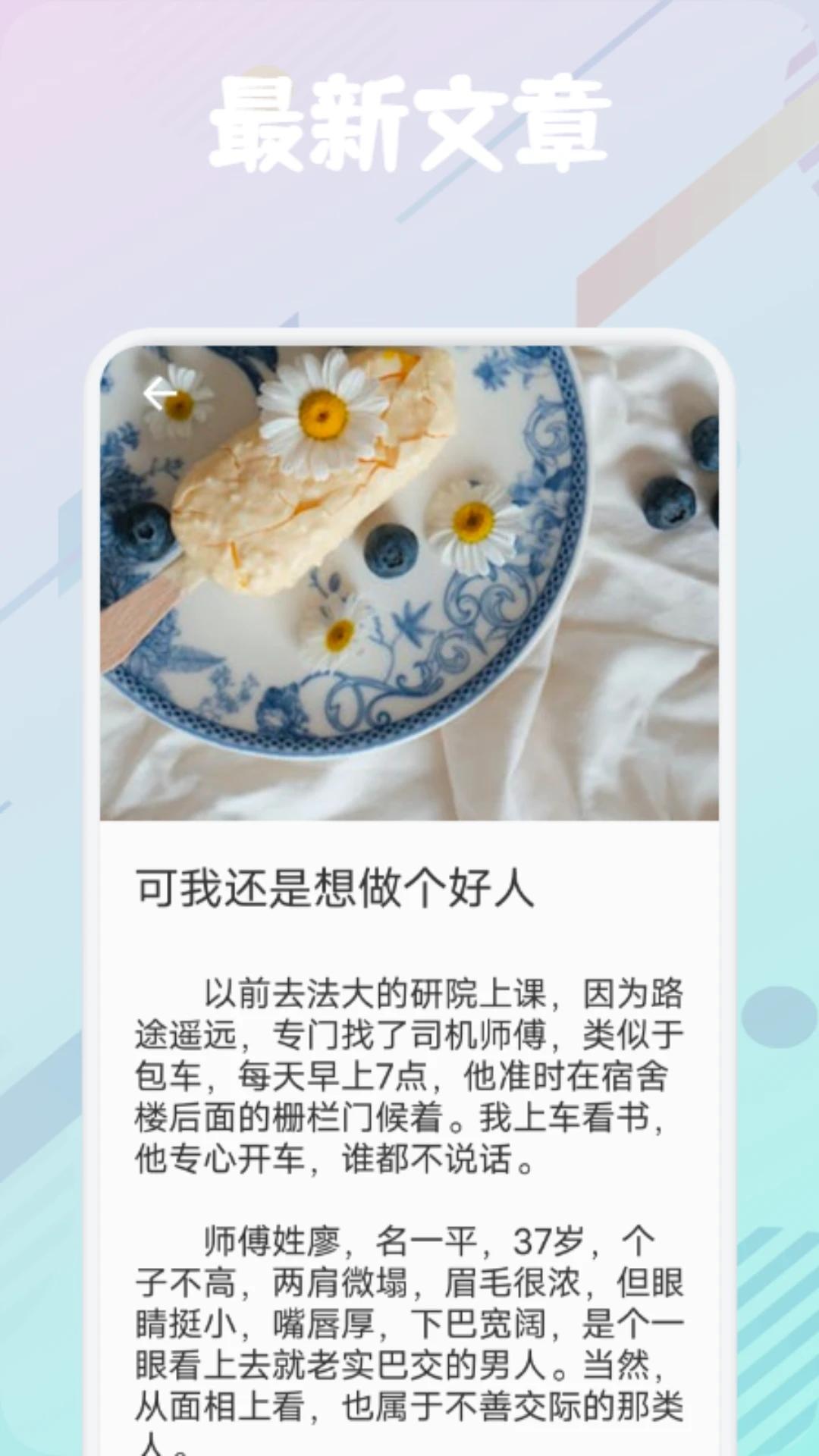 2、小说、散文、诗歌、科技等多种类别文章,满足用户多元化的阅读娱乐需求。