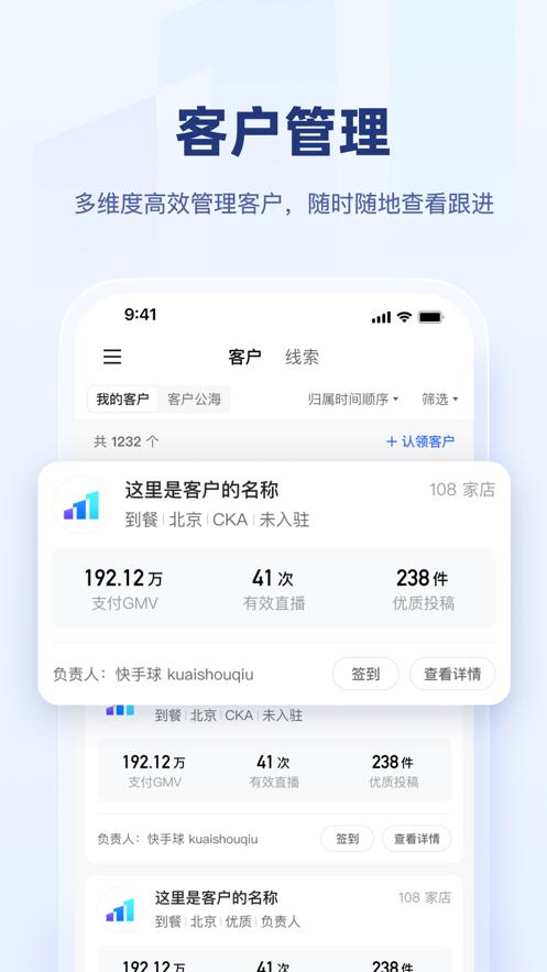快手盈客为销售提供一站式服务和商家全生命周期管理能力,