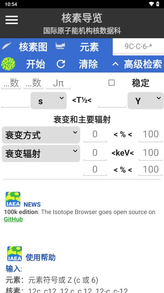 核素导览包含元素周期表和核素图,用户只要在方框上轻按,就会显示核素的特性数据。